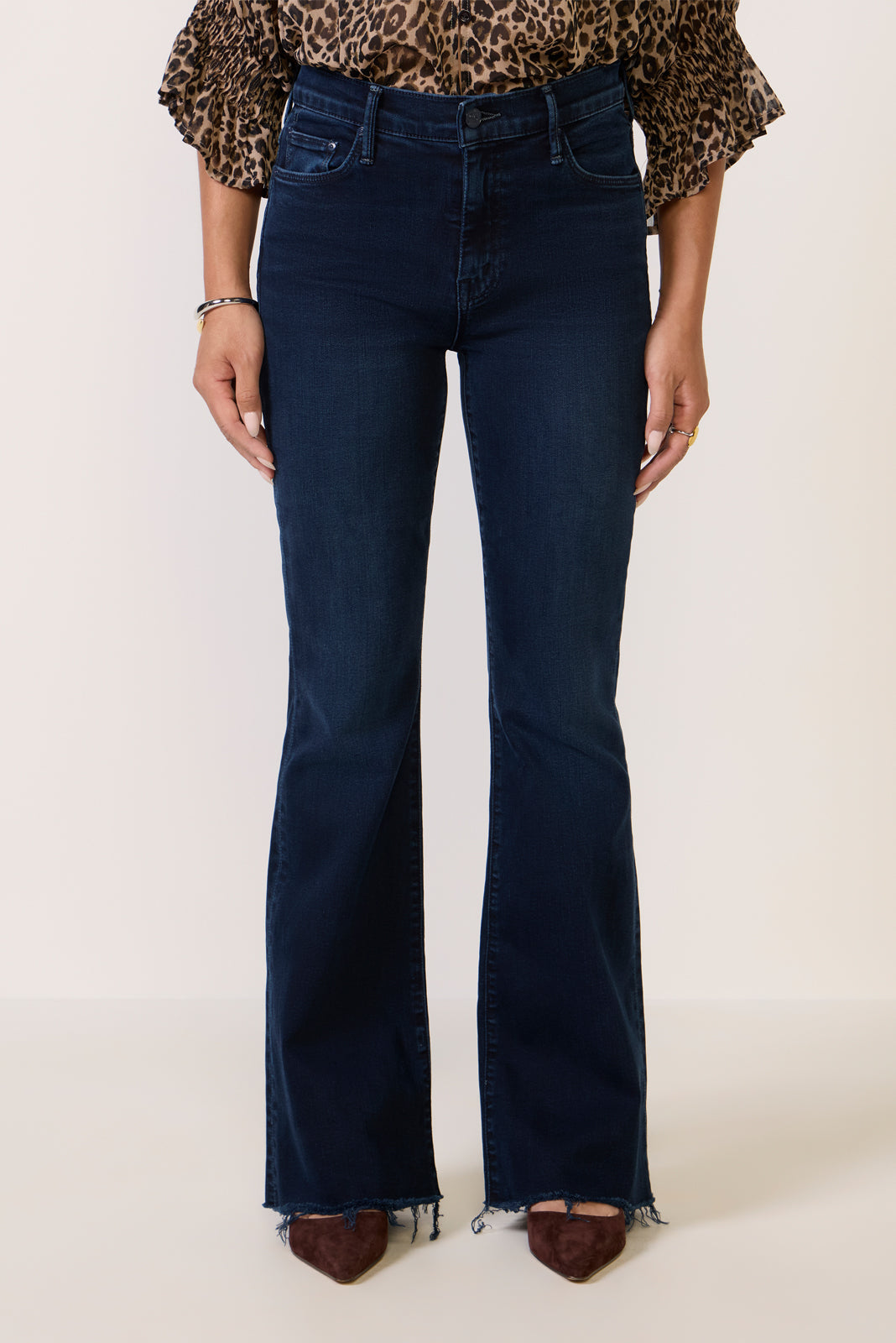 The Lil Weekender is a petite version of MOTHER’s signature flared jean. featuring a mid-rise waist. frayed hems. and soft dark-wash denim with a touch of stretch. Designed to complement petite body types. these jeans feature a higher knee placement. shorter inseam. and shorter rise for a perfect. always-flattering fit.