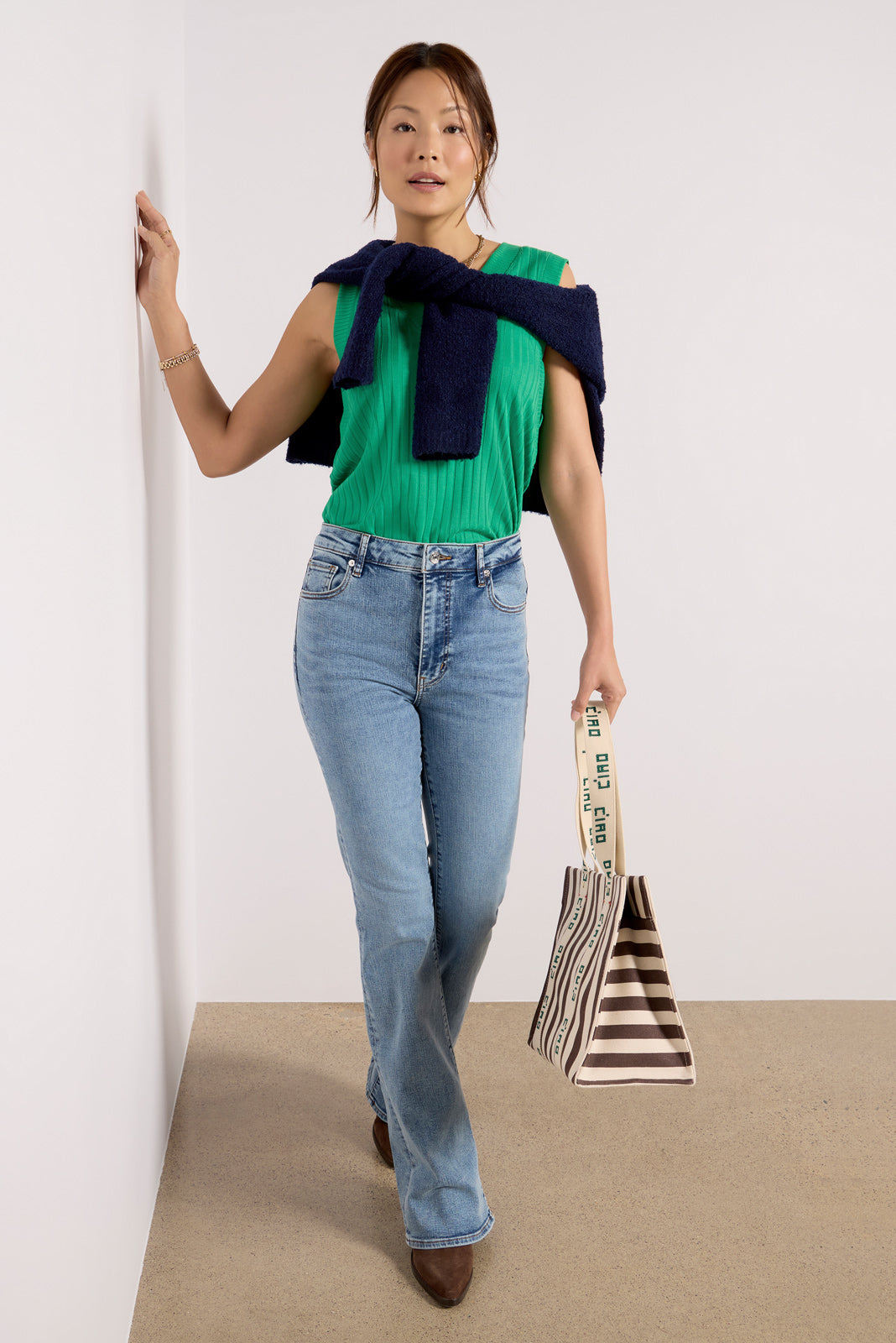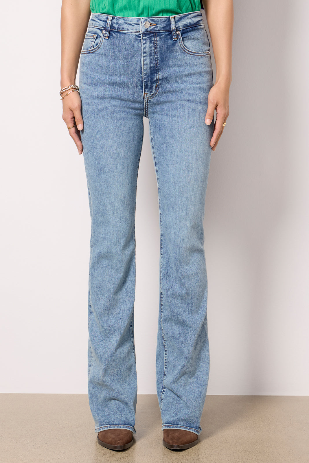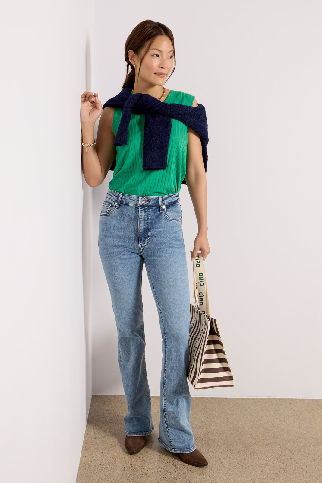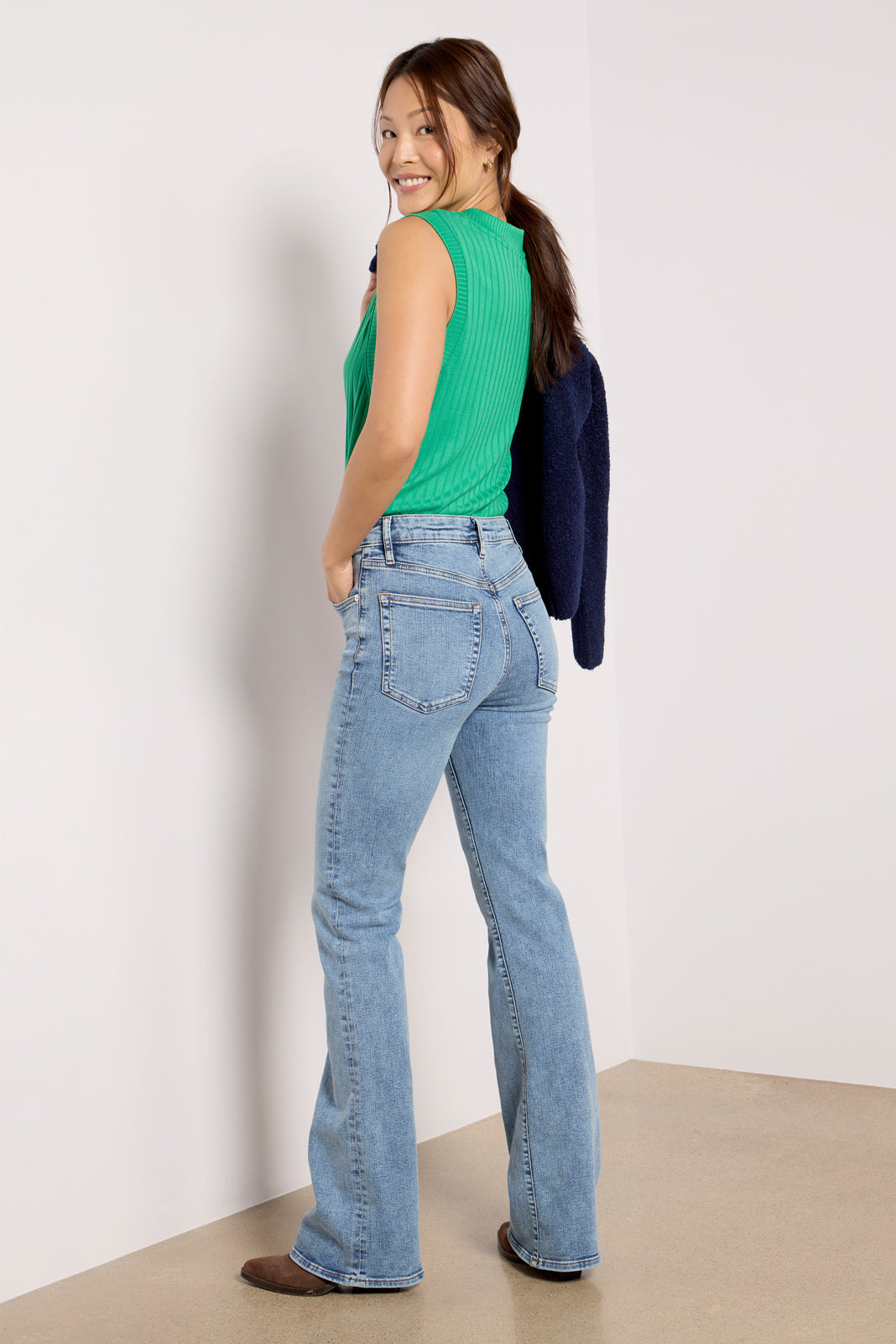A flattering bootcut silhouette defines these stylish jeans by FRAME. featuring a high-rise waist. full-length leg. and soft comfort-stretch denim for all-day wear.