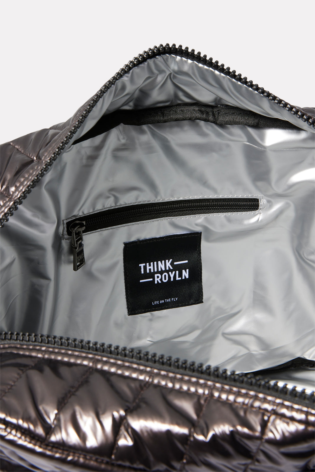 Pack your getaway necessities in this quilted travel tote by Think Royln. The Voyager bag includes a removable. adjustable crossbody strap and features a top zipper closure. exterior zipper pockets. and an interior slip pocket. It also has a back trolley slip pocket to attach to your suitcase handles??making it the perfect travel companion.