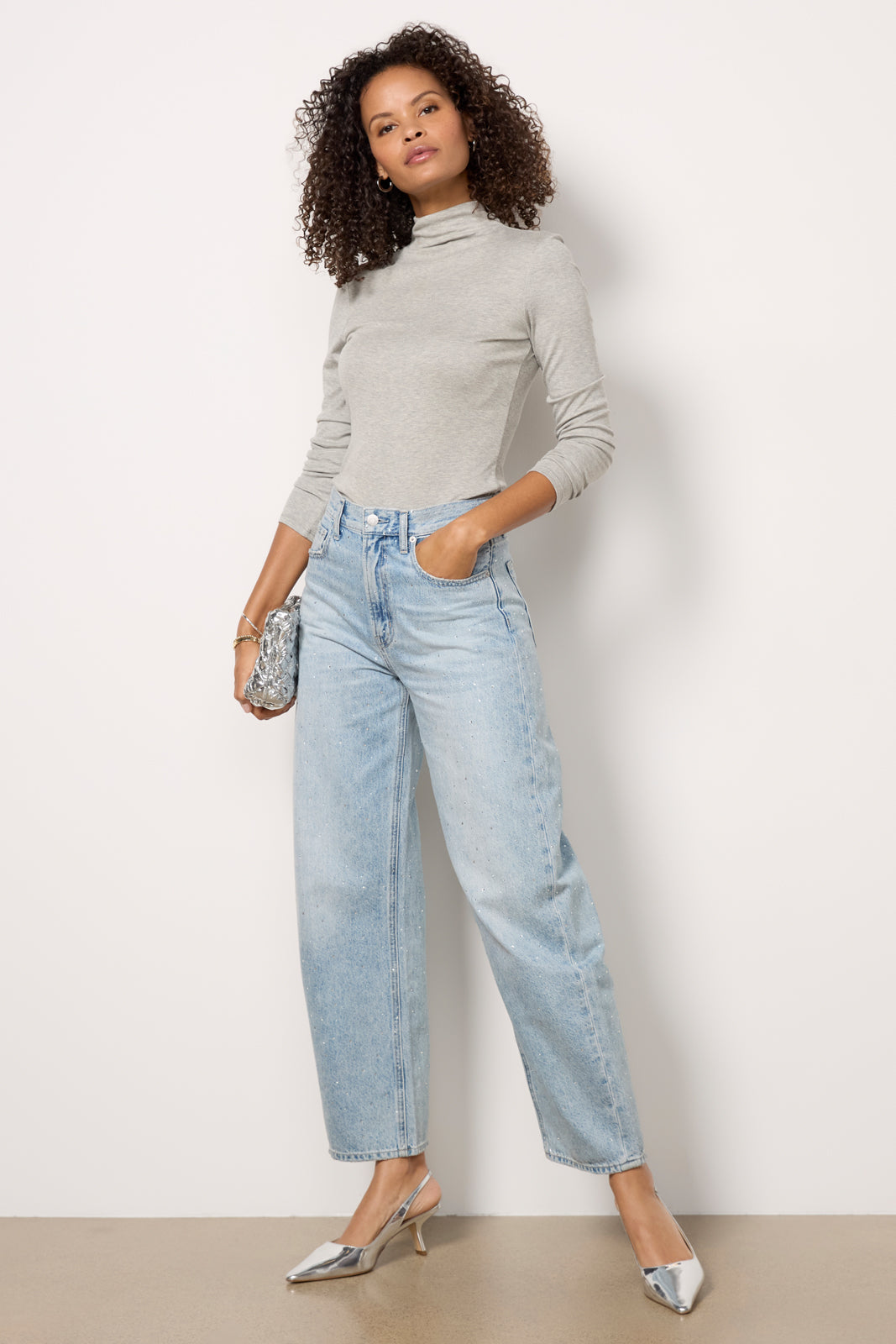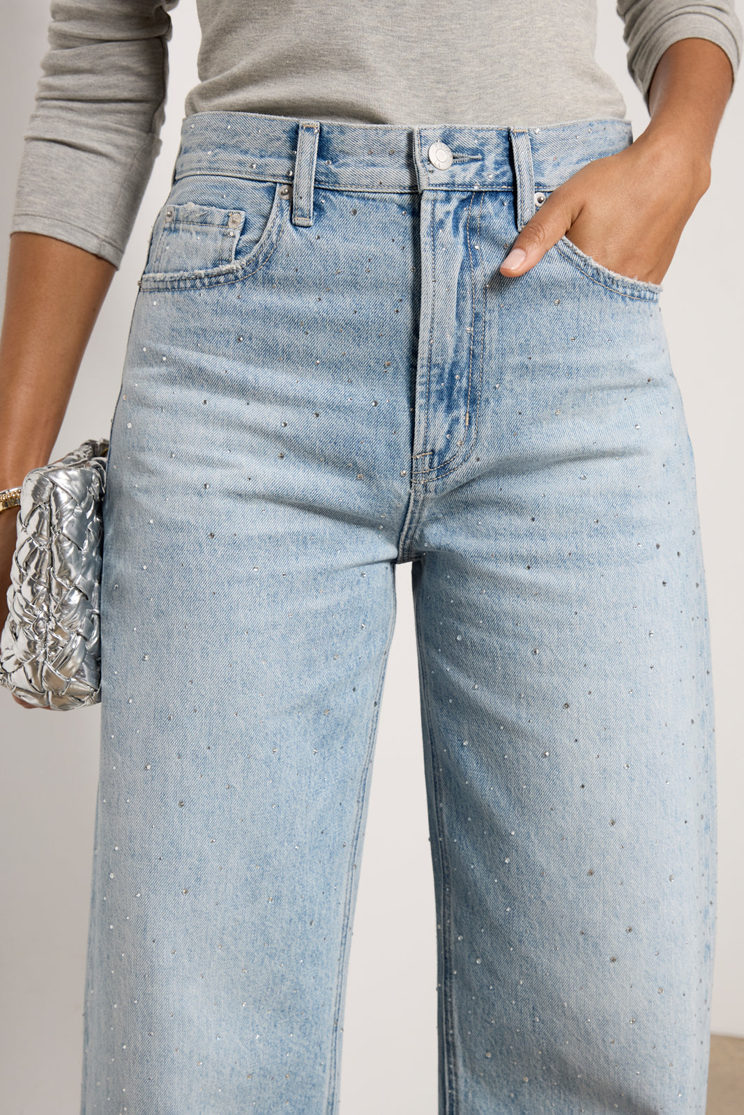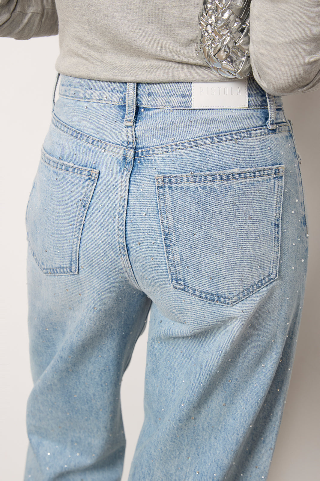 Add the perfect sparkle to your look with these party jeans from Pistola. featuring a high-rise waist. full-length inseam. and a light blue wash.